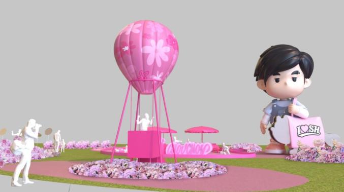 现场精心打造了粉色沙滩营地、浪漫告白气球、粉色花海、浪漫花阶等氛围打卡点。粉色气球载着花朵升空,站在花团锦簇的底座旁,仿佛下一秒就能与云朵亲密接触;粉紫繁花铺就童话地毯,轻松拍出氛围感大片。