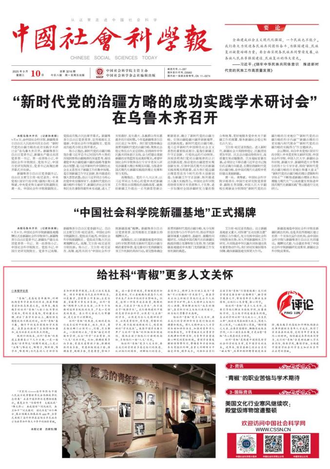 社科“青椒”是构建中国特色哲学社会科学的重要力量,是中国学术的未来。近年来,国家出台了一系列“破五唯”、改革职称评聘等制度,越来越多的高校和科研机构也推出改革举措助力青年人才成长,取得了显著成效,得到了青年学者的认可。相信在各界的共同努力下,“青椒”们能更好地融入学术共同体,传承优良学风,为构建中国哲学社会科学自主知识体系贡献力量。
