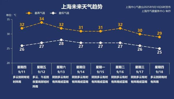 9月11日(周四):多云到阴有短时阵雨,26 - 32℃