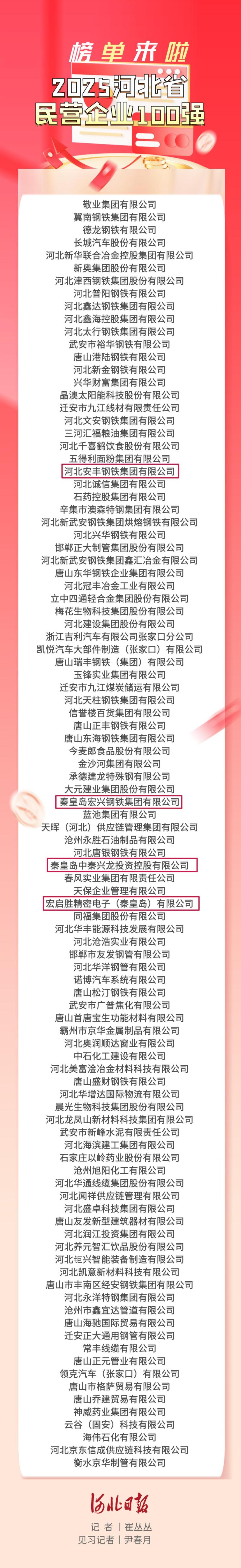 原标题:《河北百强!秦皇岛这些企业上榜→》