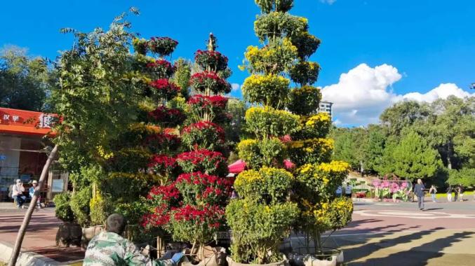 在金蕊映芳·中心广场主景区,围绕低压转子设置了菊花瀑布,并搭配“双龙”造型,形成主景观。为增强游客的参与感,景区内增设了卡通主题打卡墙、网红打卡相框和极具视觉冲击力的网红打卡花包等。菊展期间,还将同步举办美食街和特色商品售卖活动。