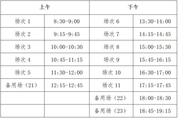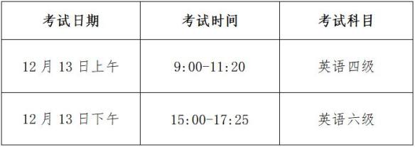 11月22日考英语四级口试,11月23日考英语六级口试,场次安排如下: