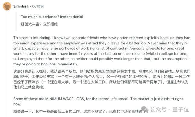 同时,申请人也怨声载道,被拒理由层出不穷。最离谱的是有人因经验太丰富被拒,原因是雇主怕他们能力太强跳槽。此外,年龄也是一个因素,毕竟公司大多倾向于有干劲的年轻人。