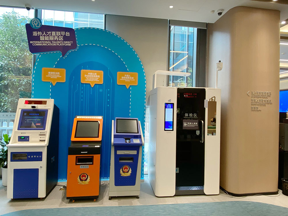 虹桥商务区设立的海外人才直联平台(虹桥)是目前上海两个市级海外人才专门服务平台之一,右一为驾驶人自助体检仪
