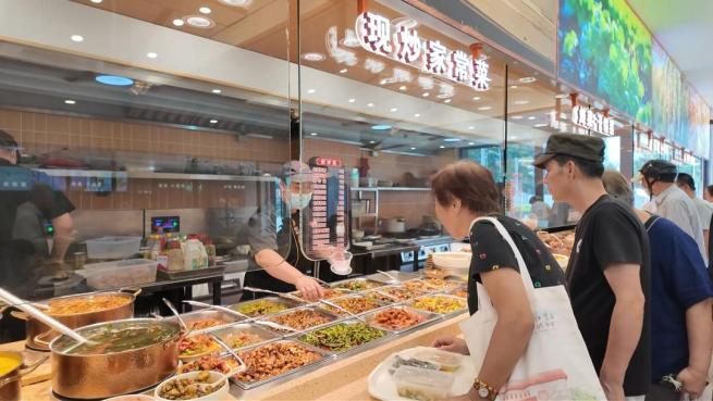 正在就餐的陆阿姨笑着说:“价格比较适中,老年人还有打折,而且这里菜品多、选择自由,不像有些店比较单一。”像她这样把这里当作“家庭厨房”的老人不在少数。来自江苏路的陈爷叔表示:“这么热的天省得烧了,我们基本上一个礼拜要来个两三趟。”
