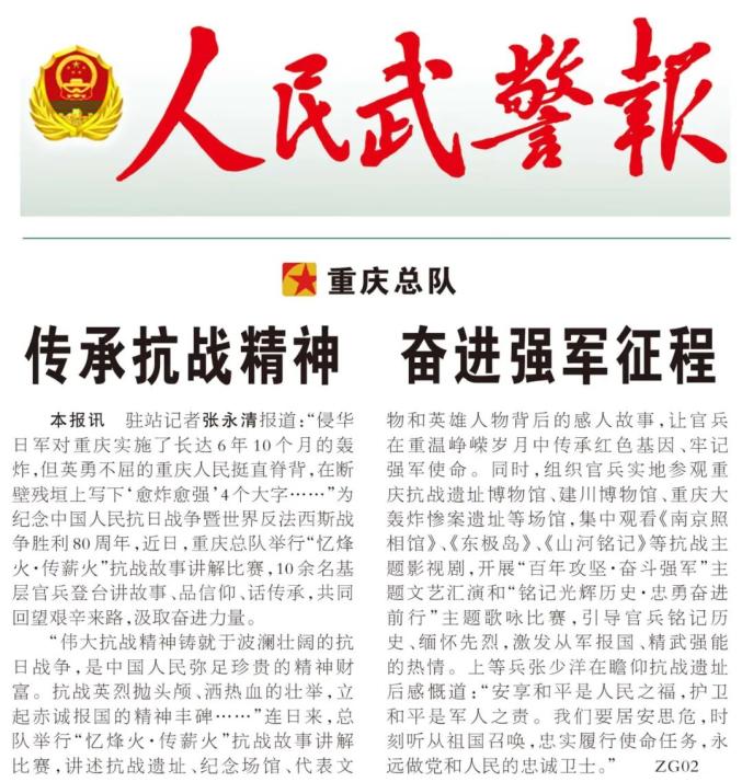 媒体关注:《人民武警报》头版头条——传承抗战精神,迈向强军征程