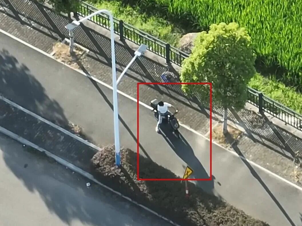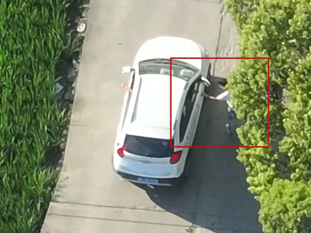 让嫌疑人没想到的是,警方的无人机在空中一直盯着他的动向。电瓶车到了一个岔路口,一辆白色汽车与它会合,骑电瓶车的嫌疑人把现金扔进汽车,两车朝不同方向离开。