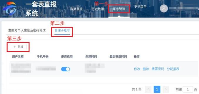 依次选择“账号管理”“管理子账号”,点击【新增】后,输入用户名称、用户密码和手机号码,即可创建成功。