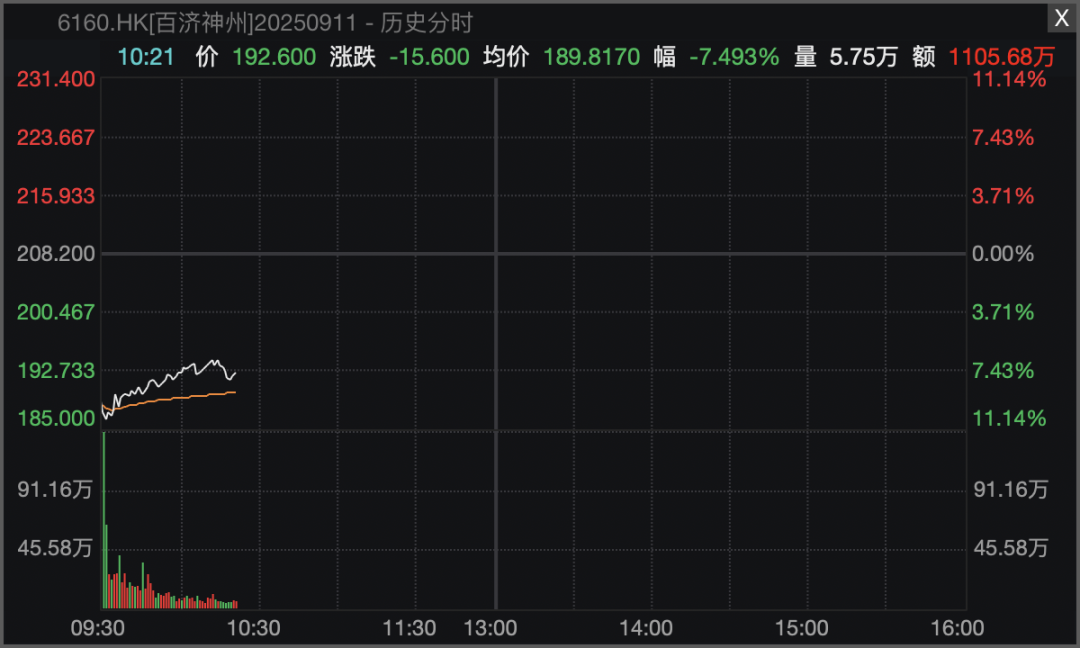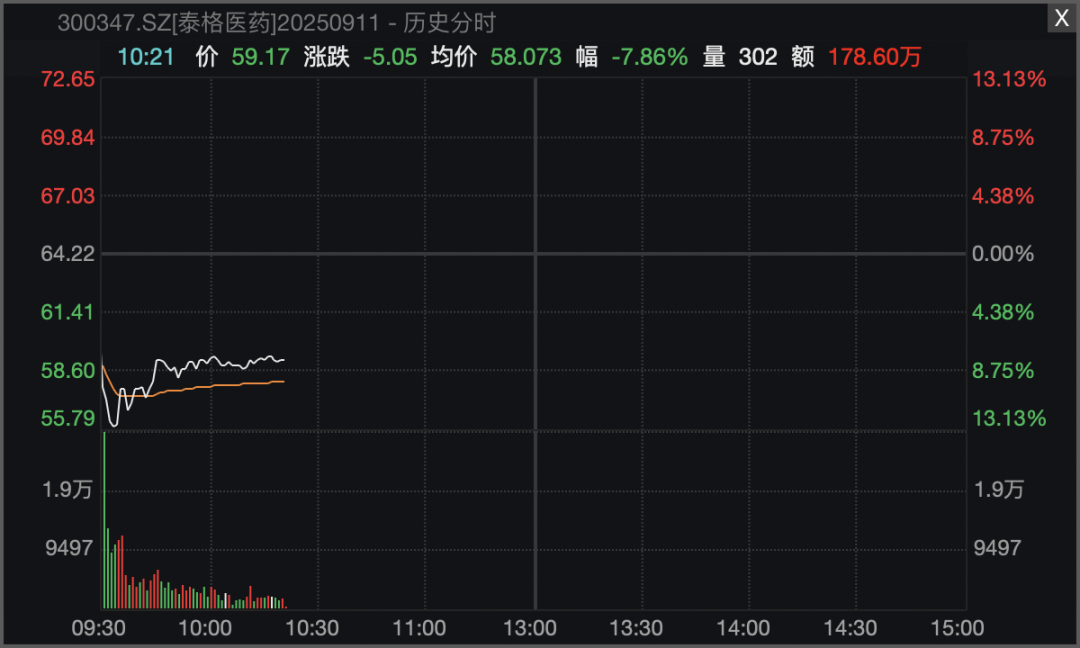 医药股大幅下跌。A股药明康德、泰格医药一度跌逾7%。CRO板块走弱,皓元医药、康龙化成、凯莱英、阳光诺和等跌幅居前。 港股医药股也跌幅居前,百济神州、石药集团跌超7%,药明生物跌近7%,信达生物跌超5%,康方生物跌超4%。