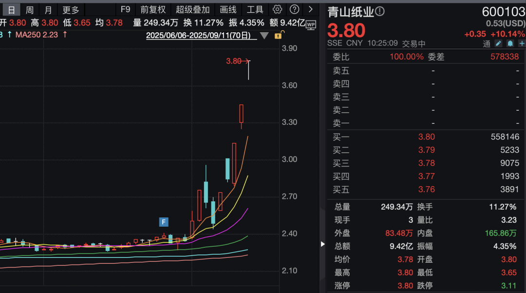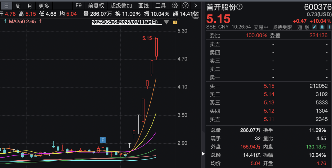 首开股份(600376)涨停,走出7连板,7个交易日累计涨幅超95%。