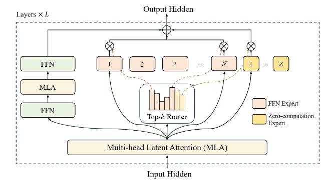 比如美团的LongCat就采用了这种方法,从报告来看,他们采用了一种叫“零计算专家”的机制。