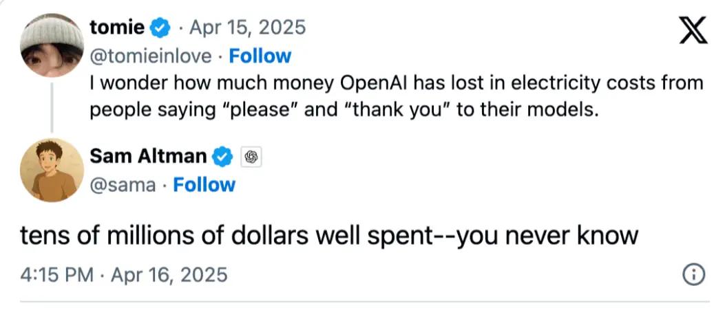 难怪奥特曼在网上跟网友说,你们跟GPT说声谢谢都要花他上千万美元。之前的高级模型,一句谢谢也能让它思考几分钟,确实有些浪费。