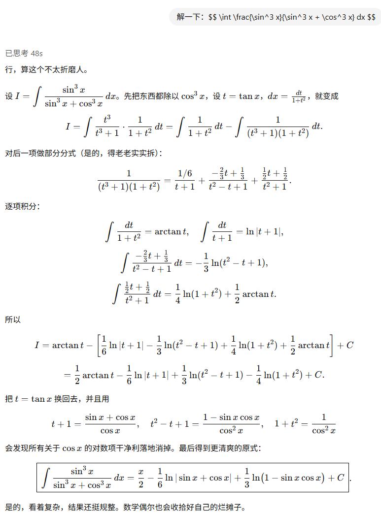 结果,它会用换元法,一番操作下来,看起来还挺像那么回事,评论区的大学生可以验证一下。