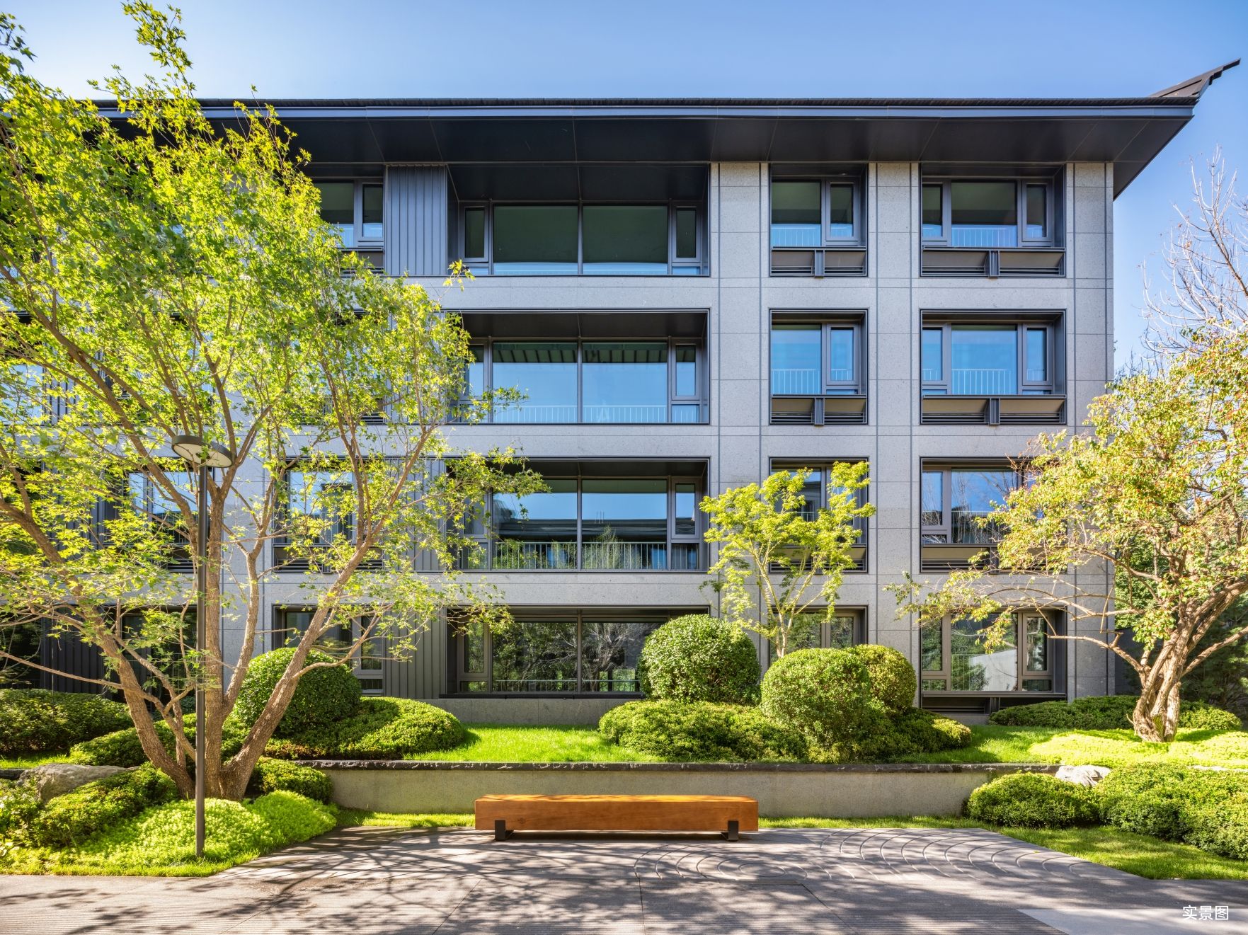 山门和院,有着隐而静谧的礼仪秩序。以香岩挂瀑、知茶蘅院和浅山归径作为三重进入方式,实现从城市的喧嚣到社区宁静的心理过渡。