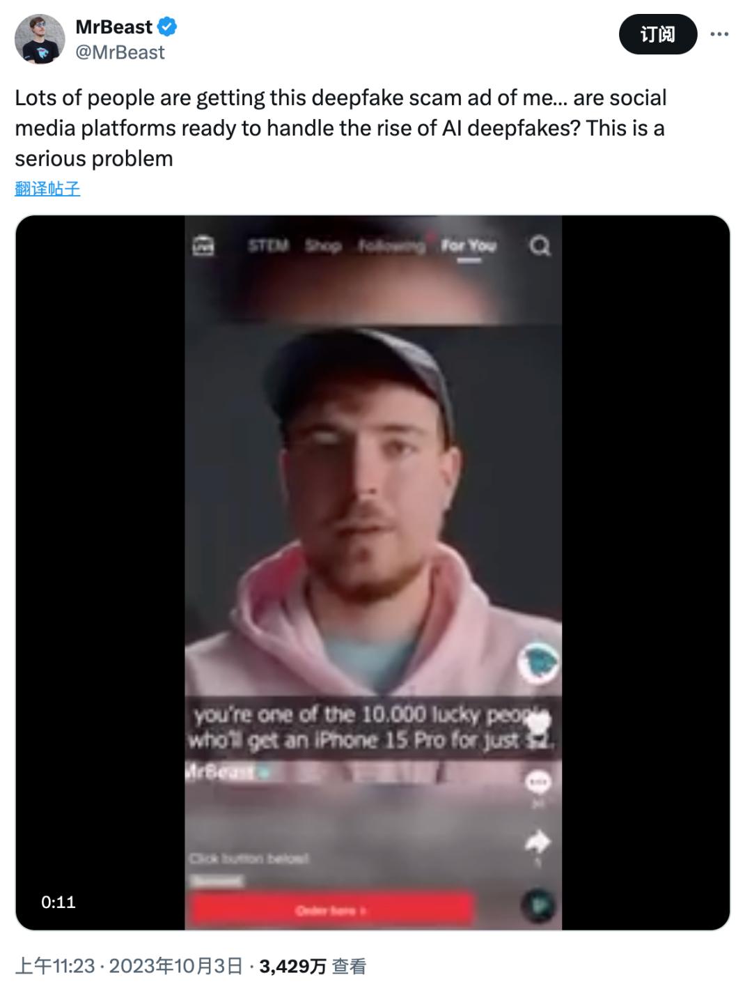 MrBeast被AI换脸伪造代言视频