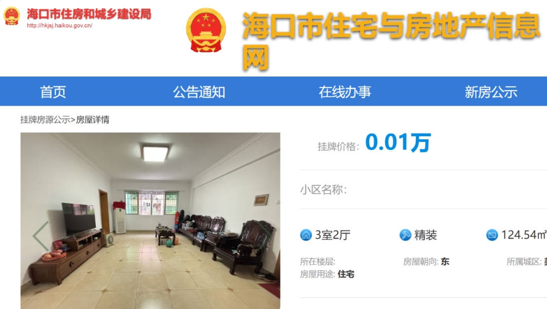 海口二手房现“零元房”“100元房”,住建局将核实整改