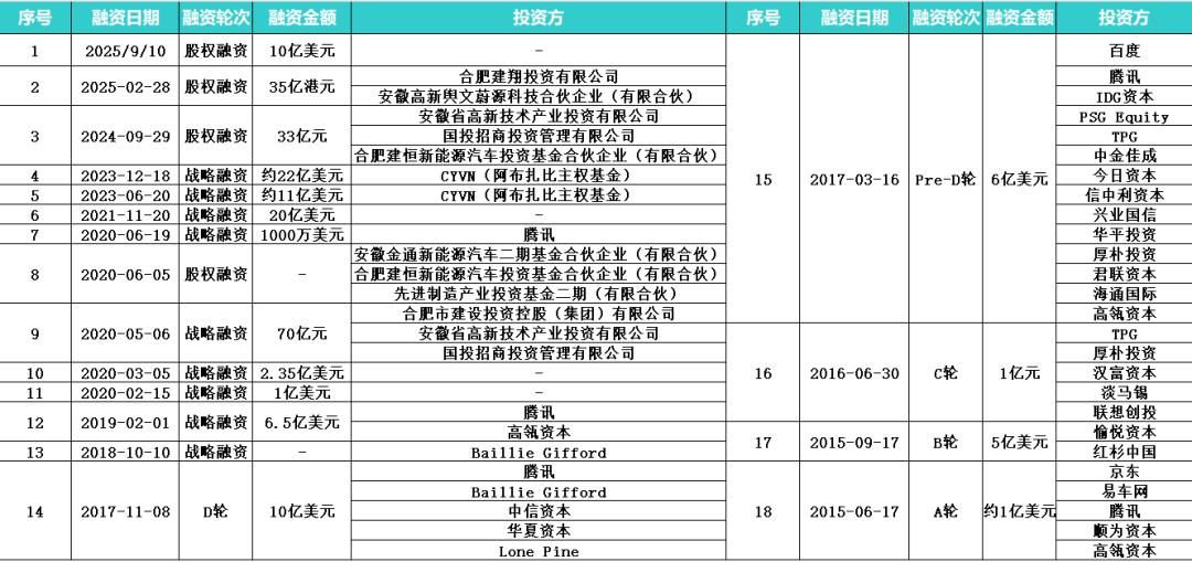 对比小鹏、理想、零跑等新势力,不完全统计各自融资历程后会发现,无论融资次数还是规模,蔚来都名列前茅。