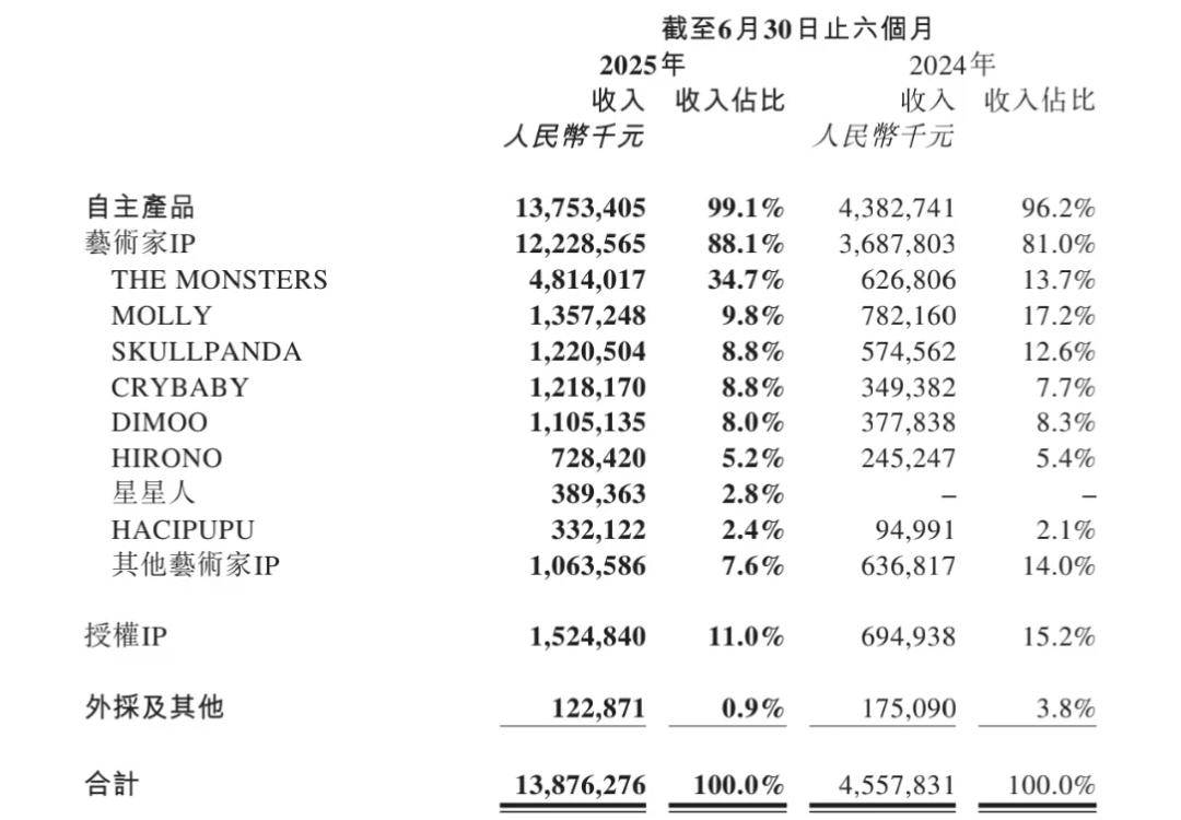 具体而言,LABUBU所在的THE MONSTERS系列,2025年上半年营收达48.1亿元,占泡泡玛特总营收近三分之一。