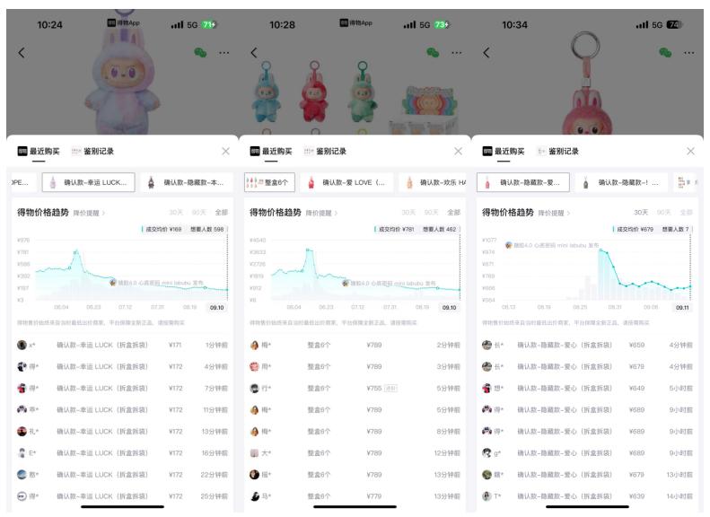 值得注意的是,泡泡玛特打击黄牛、扩大供应时,优质IP稀缺性被稀释,二手市场LABUBU价格下降也影响了其他IP产品价格。