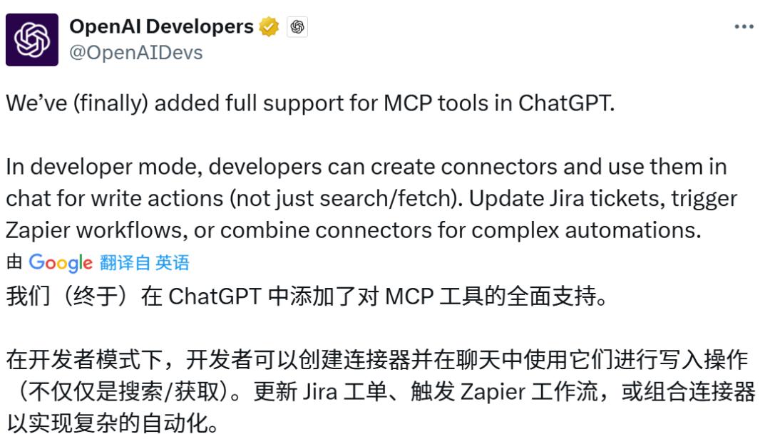 ChatGPT终于加上了大家期盼已久的MCP支持。今天,OpenAI正式官宣ChatGPT的MCP功能上线。