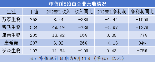 从全行业看,2025年上半年,中国疫苗上市公司整体的疫苗收入同比下降60%,净利润同比下降113%。