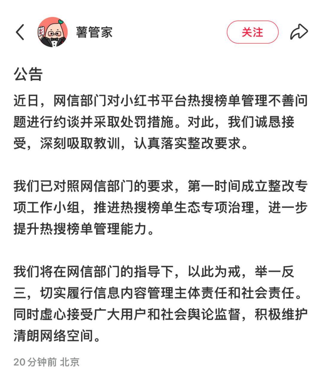 2024年,上海网信办因小红书热搜推明星八卦约谈平台,要求优化算法、追责责任人。时隔一年,类似问题再次复发。