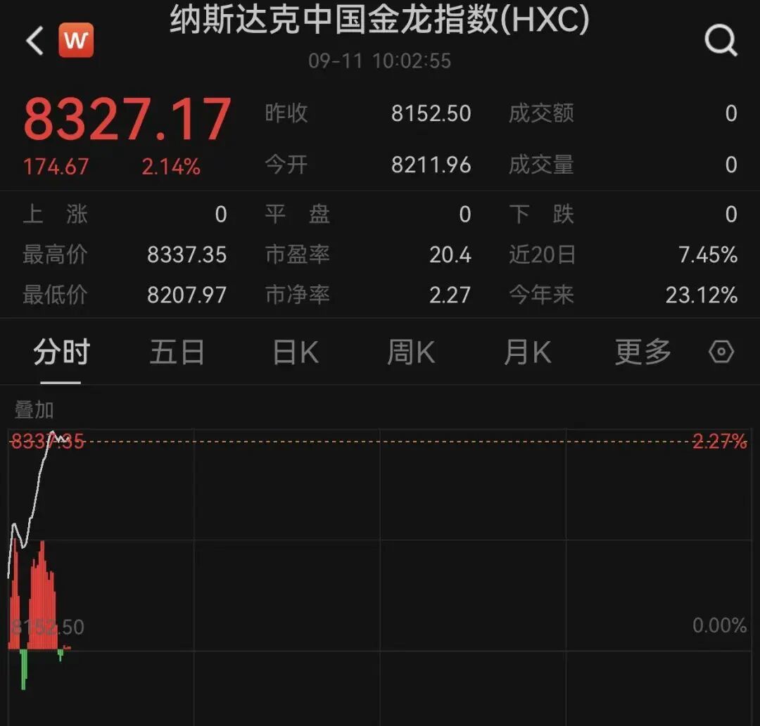 纳斯达克中国金龙指数涨幅超2%,热门中概股多数上涨。其中,再鼎医药涨幅超11%,世纪互联涨幅逾15%,万国数据涨幅超7%,金山云、叮咚买菜涨幅超4%,禾赛科技、阿里巴巴涨幅超3%,蔚来、迅雷涨幅逾2%。