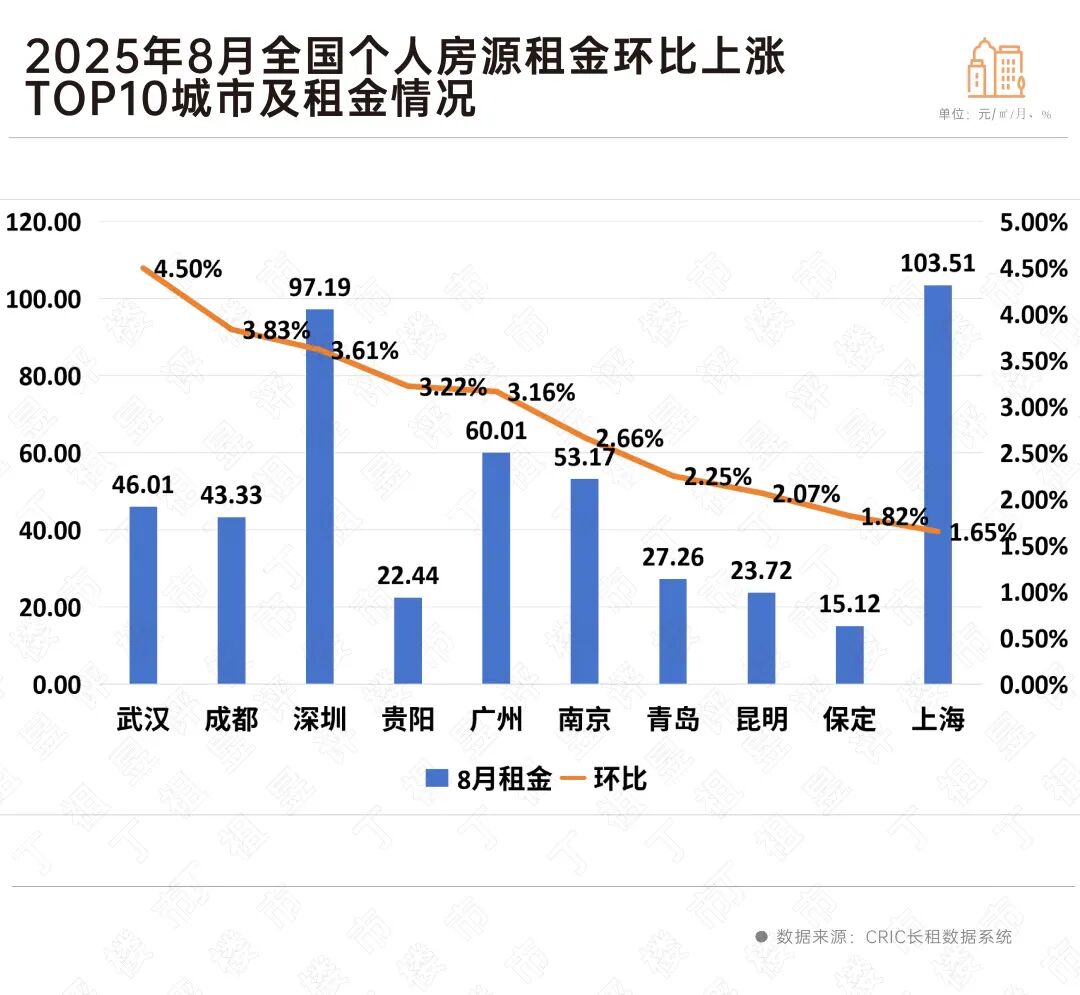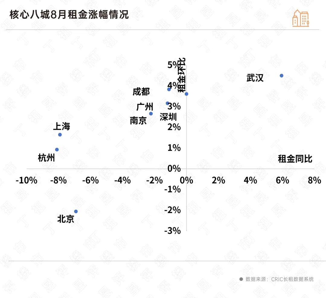重点八城房租多数环比上涨,仅北京同环比双降,租赁市场格局生变