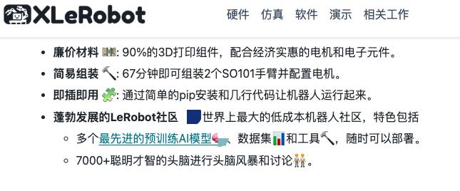 另外,作为机器人,后期还有训练部分,官方也考虑到了,提供了“说明书”。项目主页有从Conda环境配置到机械臂控制的完整教程,还涉及相机可视化调试等内容,技术门槛相对较低。