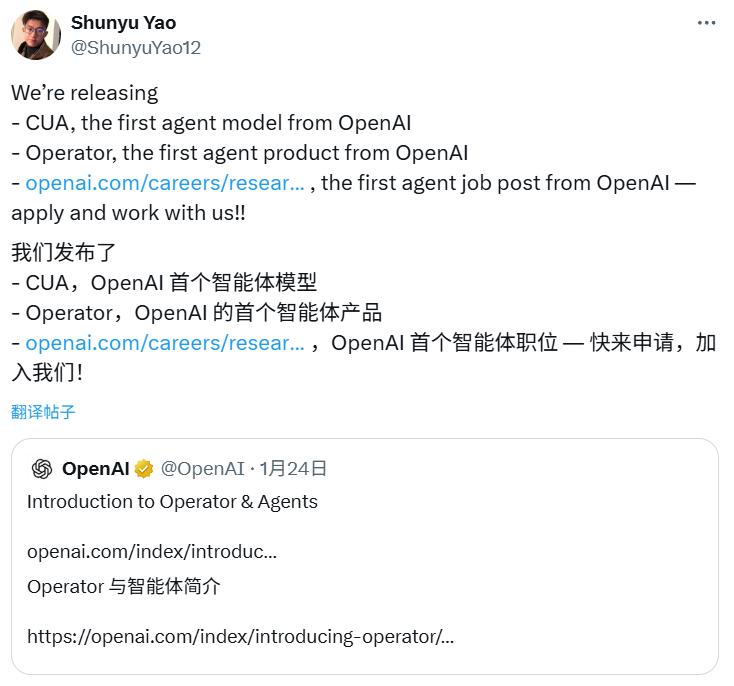 总体而言,姚顺雨在OpenAI的工作继承并拓展了他在普林斯顿大学博士期间(如ReAct、Tree of Thoughts)的研究,致力于推动AI在真实数字世界中的自动化与应用。