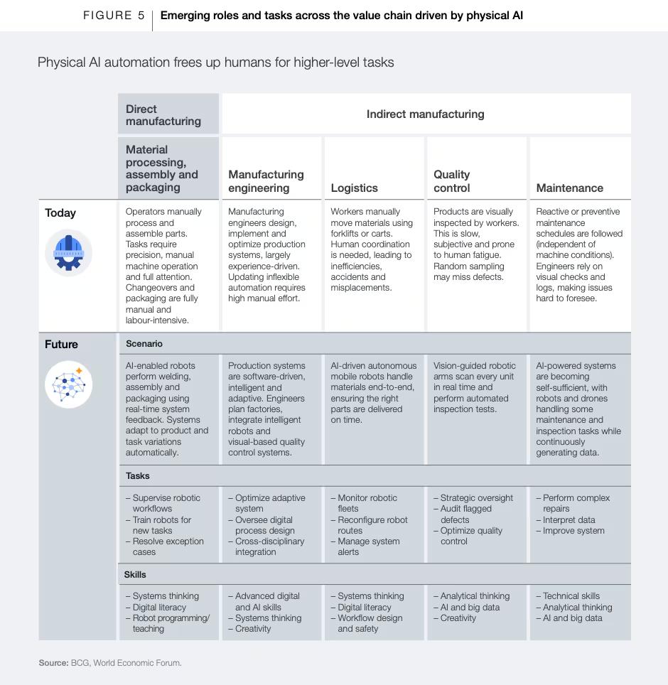 要实现这一转型,‘具备技能的劳动力’至关重要。根据世界经济论坛《2025年未来就业报告》,机器人与自主系统将成为岗位替代的主要来源。但正如最新物理AI白皮书所说,这种‘替代’并非‘岗位消失’,而是‘岗位转型’,与AI及其他数字化技术一样,机器人技术也将催生新的高技能岗位。