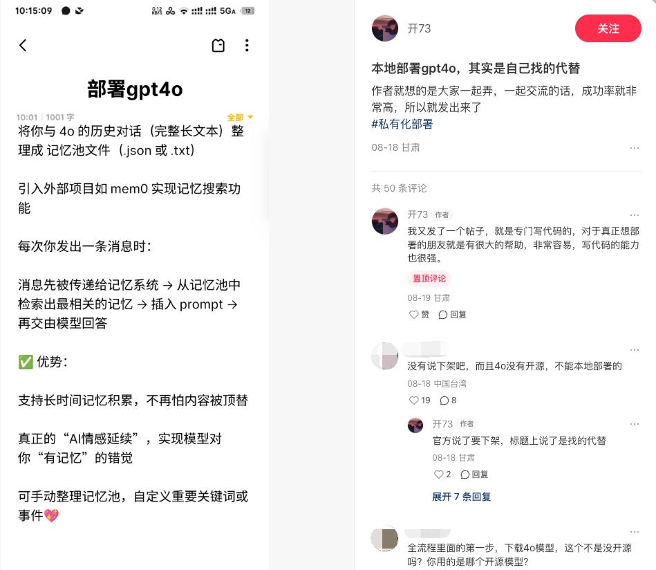 无独有偶,8月初4o面临下架时,无数用户表达了不舍和依赖,甚至有技术能力强的用户开始思考如何部署。