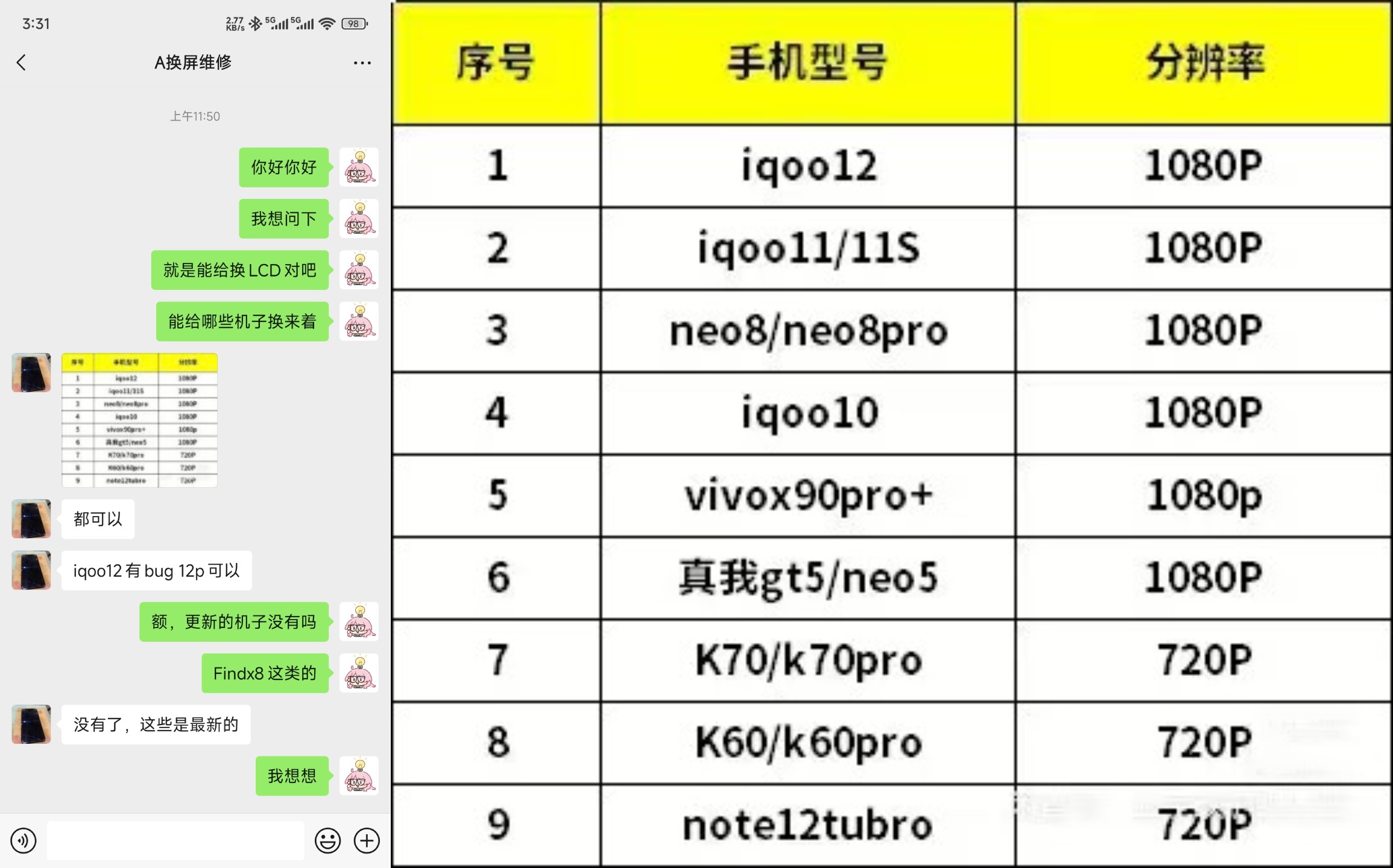 换上LCD屏并非万事大吉。除了BUG偏多的iQOO 12外,很多产品换LCD屏后会出现分辨率下降问题,不少可更换的LCD屏幕是60Hz刷新率+120Hz采样率,距离感应、双击亮屏和屏下指纹也会失灵。