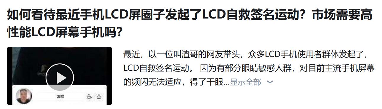 最近,科技圈出现奇闻。一群自称“OLED受害者”的用户,因无法忍受频闪,自发组织了“LCD自救签名运动”。他们建群、拉人、填问卷,准备拿着几千人的签名向手机厂商“请愿”,希望厂商为他们打造一台LCD旗舰手机。