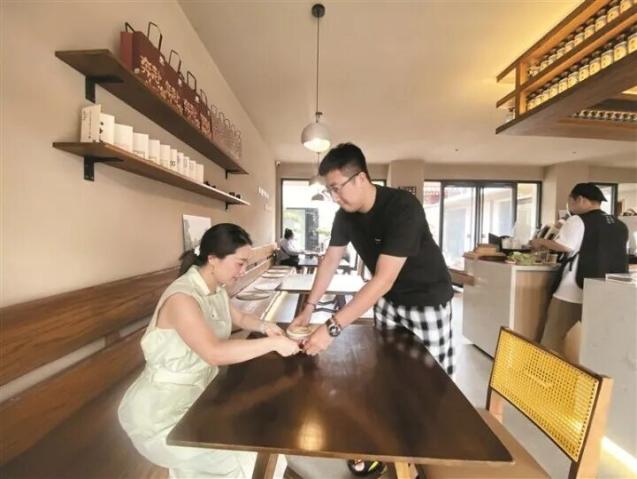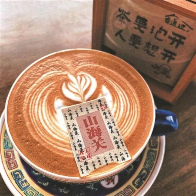 “古道边”有“新门道”:咖啡、民宿加浑锅,样样透巧思。崔铭递过招牌“国风拿铁”,说:“您尝尝,咖啡上飘着的是能吃的‘山海关’。”印着多种字体“山海关”的糯米纸,遇热就化在咖啡里,游客纷纷拍照发圈儿。