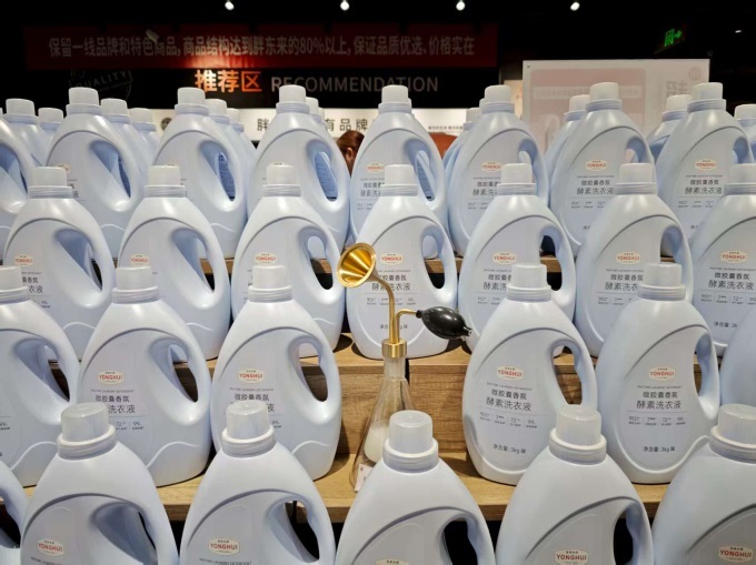 永辉自有品牌表现出色,YONGHUI橙汁、安心洁面巾等产品热销。微胶囊香氛酵素洗衣液因天然成分、洁净技术、留香和除菌除螨效果好,成为家庭洗护首选。