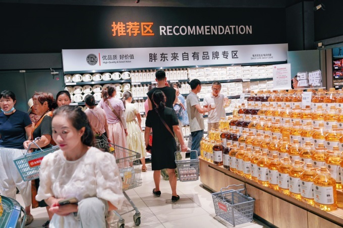 在品质升级方面,门店设立胖东来自有品牌专区,展示近70支爆款单品;同时打造永辉自有品牌矩阵。永辉定制伊利鲜牛奶以7.9元的亲民价格引发抢购,成为“优质平价”战略的代表。