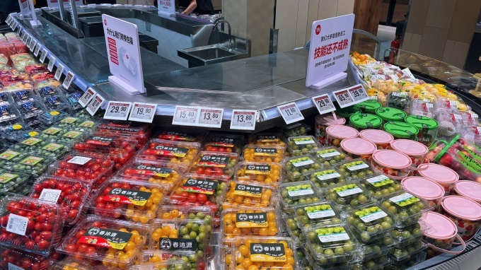 生鲜区域进行了全面升级,引入高山蔬菜、有机农产品及定向种植特色蔬果,加强了品质与源头管控;肉禽区新增进口牛肉与优质蛋白品类;水产区引入中高档冰鲜海产,同时提高了本地水产品占比。