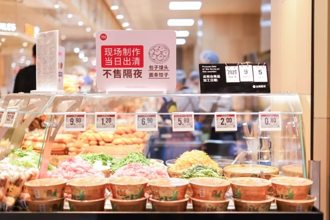 熟食区深度融合地方饮食文化,推出东来同款韩式炸鸡、双汇甜肠、臧营桥烧鸡、久多肉多麻辣猪蹄、四川钵钵鸡、日邦寿司、土家鲜肉饼等畅销单品,还与本地供应商合作引入南京盐水鸭、六合猪头肉、特色烤鸭、桂花糕等传统风味,打造出既有新意又有乡味的熟食体验。