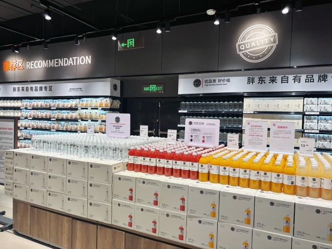 门店特别设置了胖东来商品专区与永辉优选专区,这成为一大亮点。顾客不用跑到河南,就能方便地选购DL食用油、燕麦片、精酿啤酒、自由爱·白酒等胖东来的品质好物。