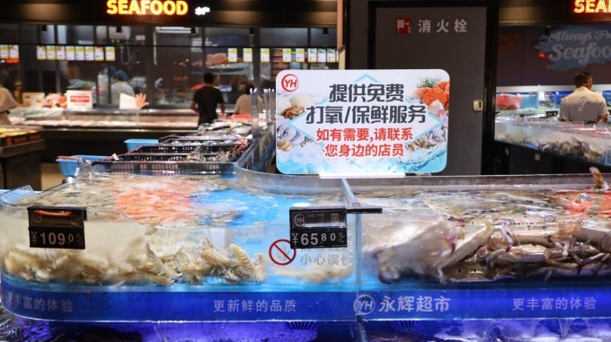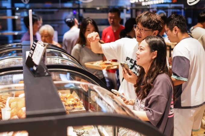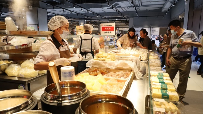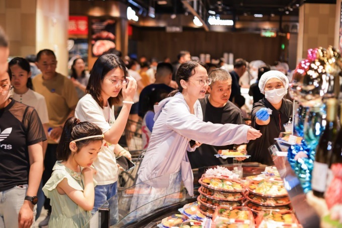 去年9月12日,清晨六点消费者就在店外排队,到早上9点首批商品就卖完了。郭岚岚也跟着排队进了超市。“货架变低了,通道变宽了,员工笑容多了。灯光很温馨,感觉不像在超市,更像在社区客厅。熟食区和堂食区很热闹,有久违的烟火气。”