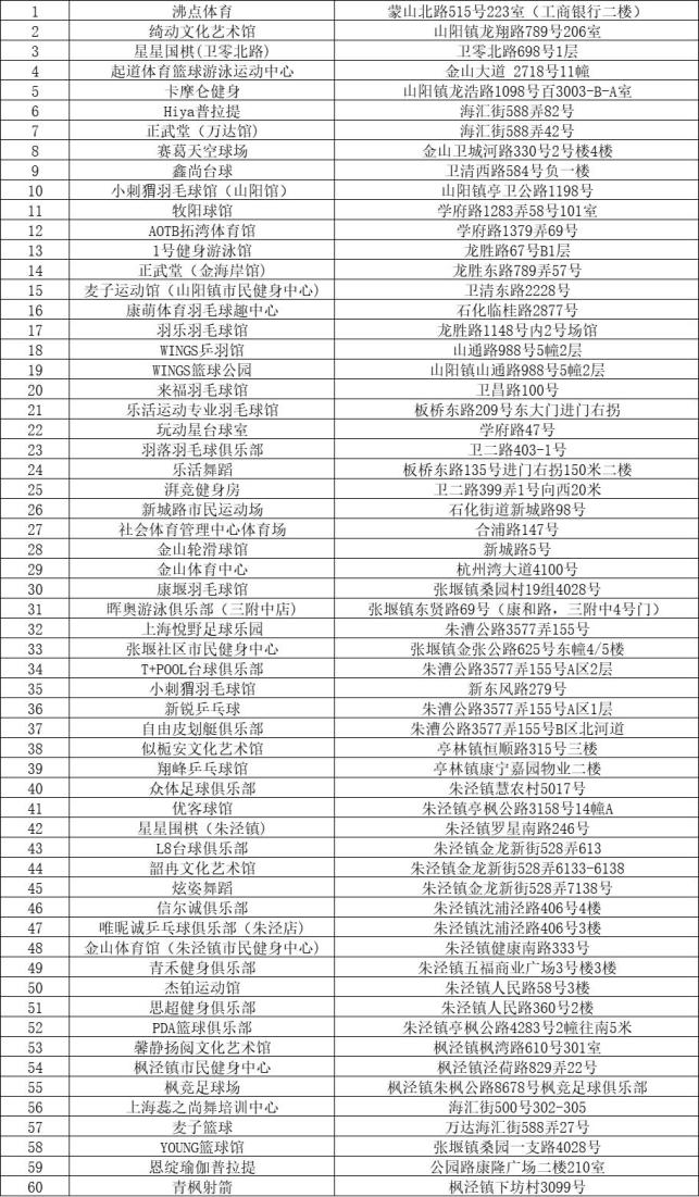 具体信息要以场馆实际情况和“来沪动|健身地图”小程序为准,请市民及时关注,安全、文明、有序地进行健身活动。