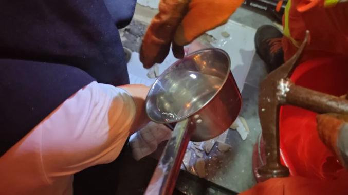 随后,使用手动破拆工具,对男子卡手位置周边的陶瓷结构实施精准破拆,扩大手臂的活动空间。经过几分钟的紧张救助,男子手臂成功脱困。