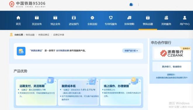 此次上线的“运费证”金融产品构建了物流金融全新生态。一方面,全流程线上化设计让客户借助95306平台,一键就能完成信用证申办、交单、还款等操作,业务办理时效从传统的7天大幅压缩至24小时内;另一方面,依托银行低成本资金,产品利率较市场物流贷显著降低,配合“福费廷”模式进一步降低企业财务成本,成本优势明显。此外,借助铁路预付款账户定向支付,实现资金闭环管理,确保专款专用,构建起“企业—银行—铁路”三方安全体系。