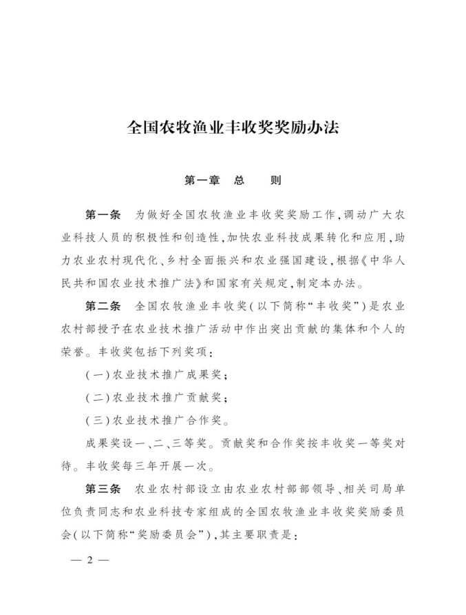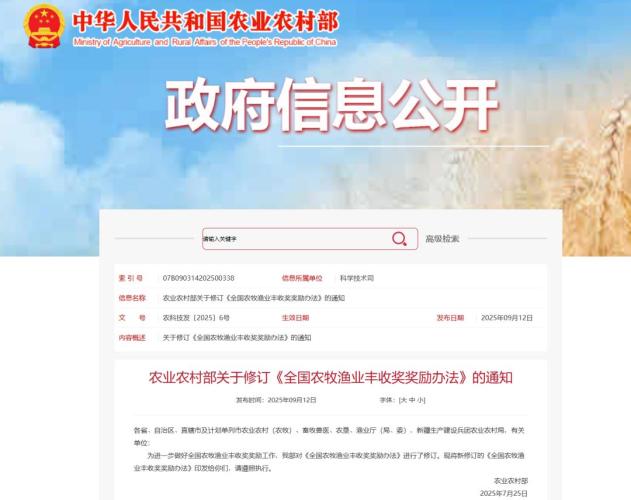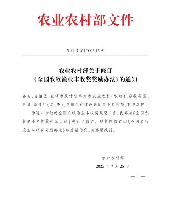 为更好地开展全国农牧渔业丰收奖奖励工作,农业农村部对《全国农牧渔业丰收奖奖励办法》进行了修订。