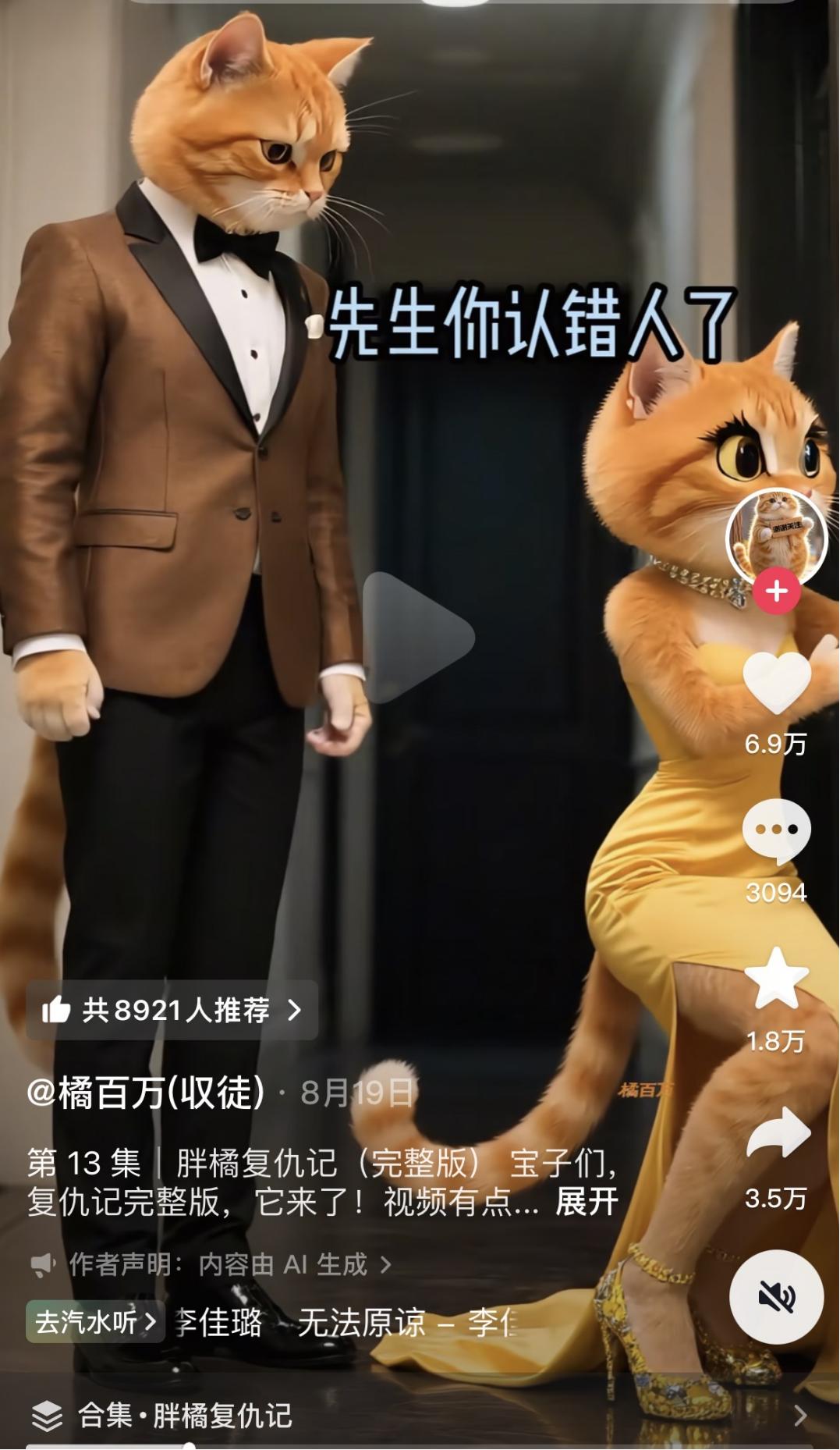 从需求端看,AI猫狗短剧精准击中年轻人情绪痛点,用萌系外表包装碎片化剧情,成为解压神器。