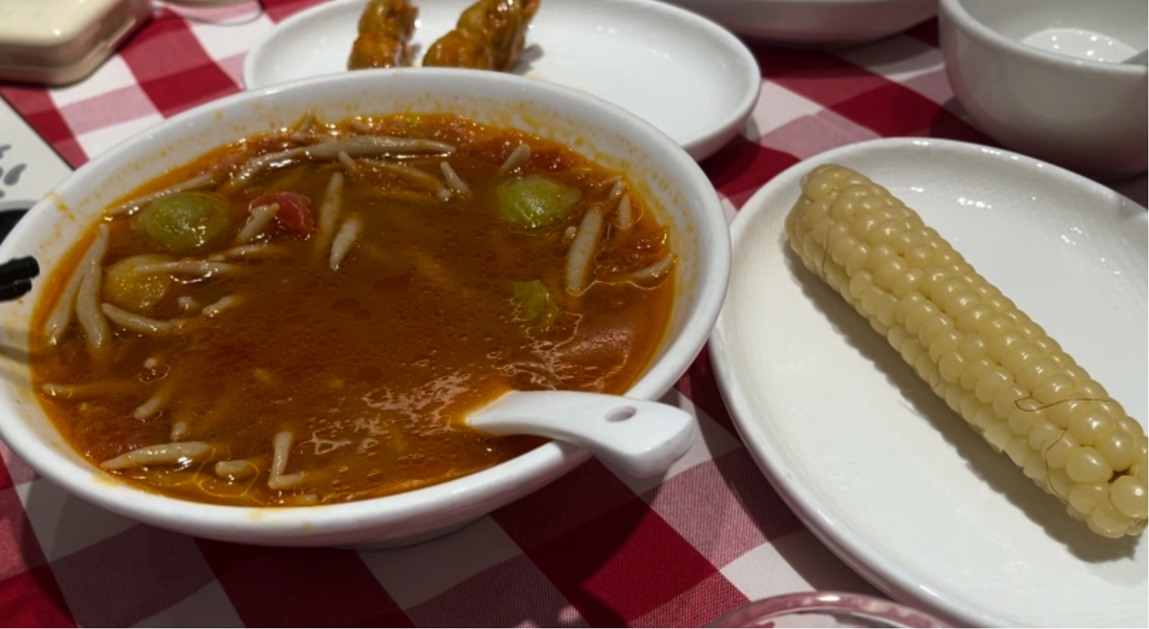 另一旁是两位十四五岁左右的初中女生,正共享一碗莜面,挎包上挂着一个《盗墓笔记》角色的棉花娃娃。她们说这是第一次来,只点了一碗面、两根烤串、一份小玉米,消费56元。问到味道,戴眼镜的女孩直言:“不好吃,而且还贵。”