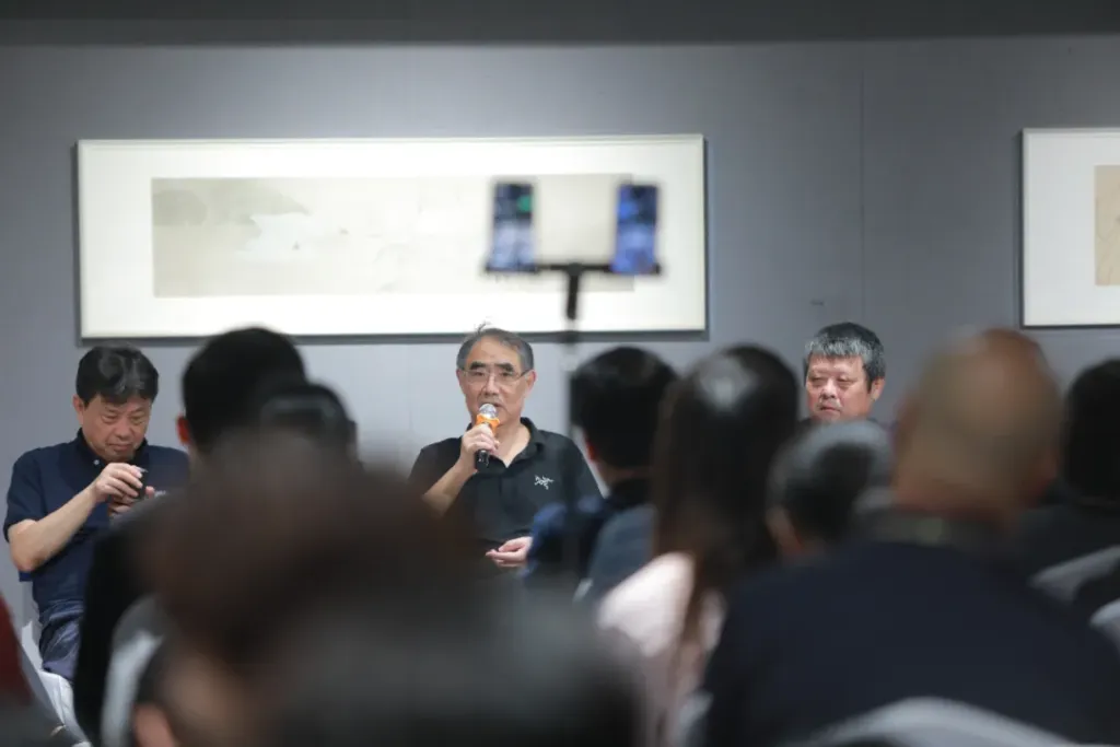在学术分享会现场,与会学者围绕江宏伟的艺术创作与工笔花鸟语言的当代发展等议题,展开了多元讨论。他们从创作实践与理论思考等多个维度,探讨了江宏伟艺术中“洗染法”带来的视觉革新、灰色调的诗性表达,以及如何在传承传统的基础上实现当代意涵的转化。