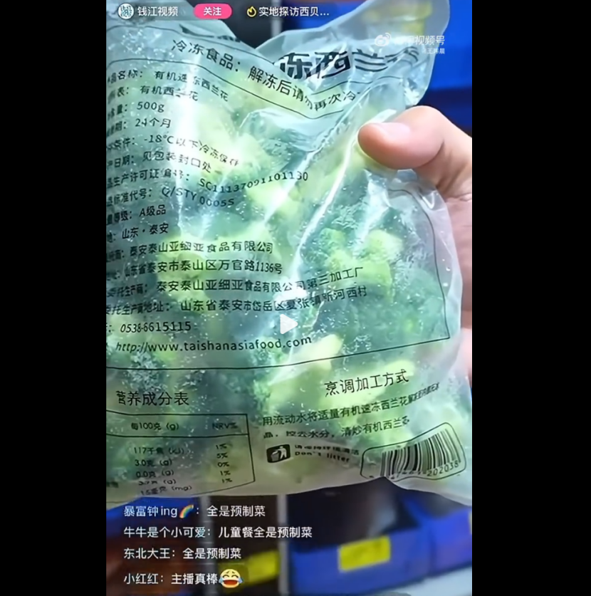 虽然西贝的直播里出现了提前腌制好的鱼、保质期两年的西兰花等冷冻食材,但这些都不属于官方定义的预制菜范畴。