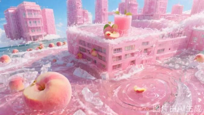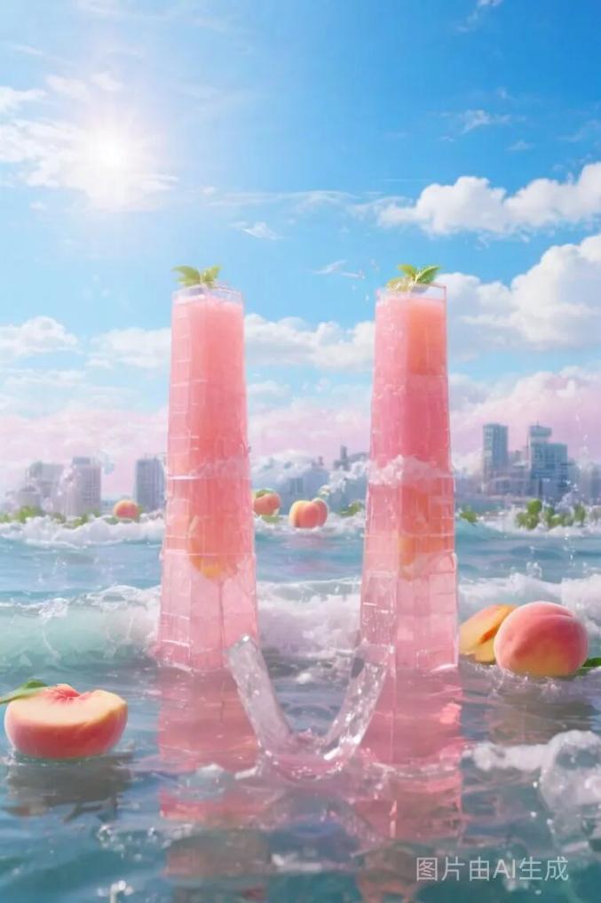 杭州之门摇身一变,成了粉嫩清甜的水蜜桃,楼顶斜插着两片薄荷叶,仿佛能把迎面而来的燥热都驱散。就连每一滴江水都仿佛浸着桃汁的香甜。